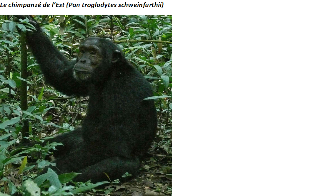 Autour de ces arbres évoluent deux espèces emblématiques du PNKB : le chimpanzé de l’Est (Pan troglodytes schweinfurthii) Ces primates jouent un rôle écologique vital, ils sont les jardiniers de la forêt. Les chimpanzés, partageant 98,7 % de notre ADN, dispersent les graines, entretiennent les jeunes forêts et préservent la diversité végétale. Leur intelligence, leur langage gestuel et leurs comportements sociaux rappellent notre propre humanité.